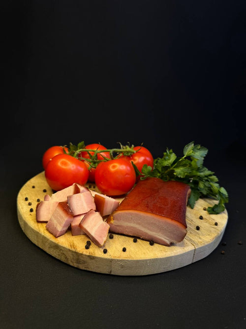 Smoked pork neck is a premium product, traditionally prepared through slow smoking over hardwood. It maintains a perfect balance between meat and fat, delivering an authentic flavor and tender texture. Ideal for festive platters, sandwiches, or traditional meals.